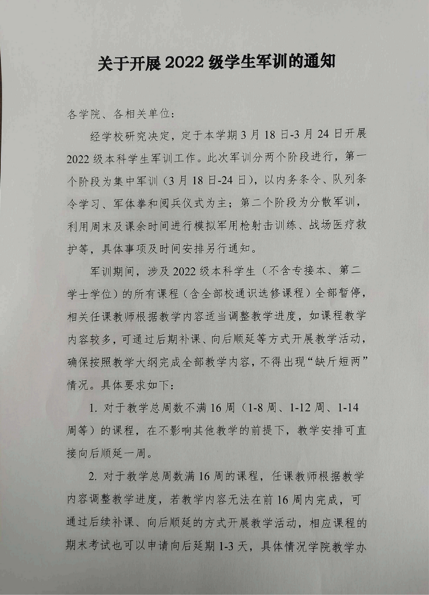 关于开展2022级员工军训的通知